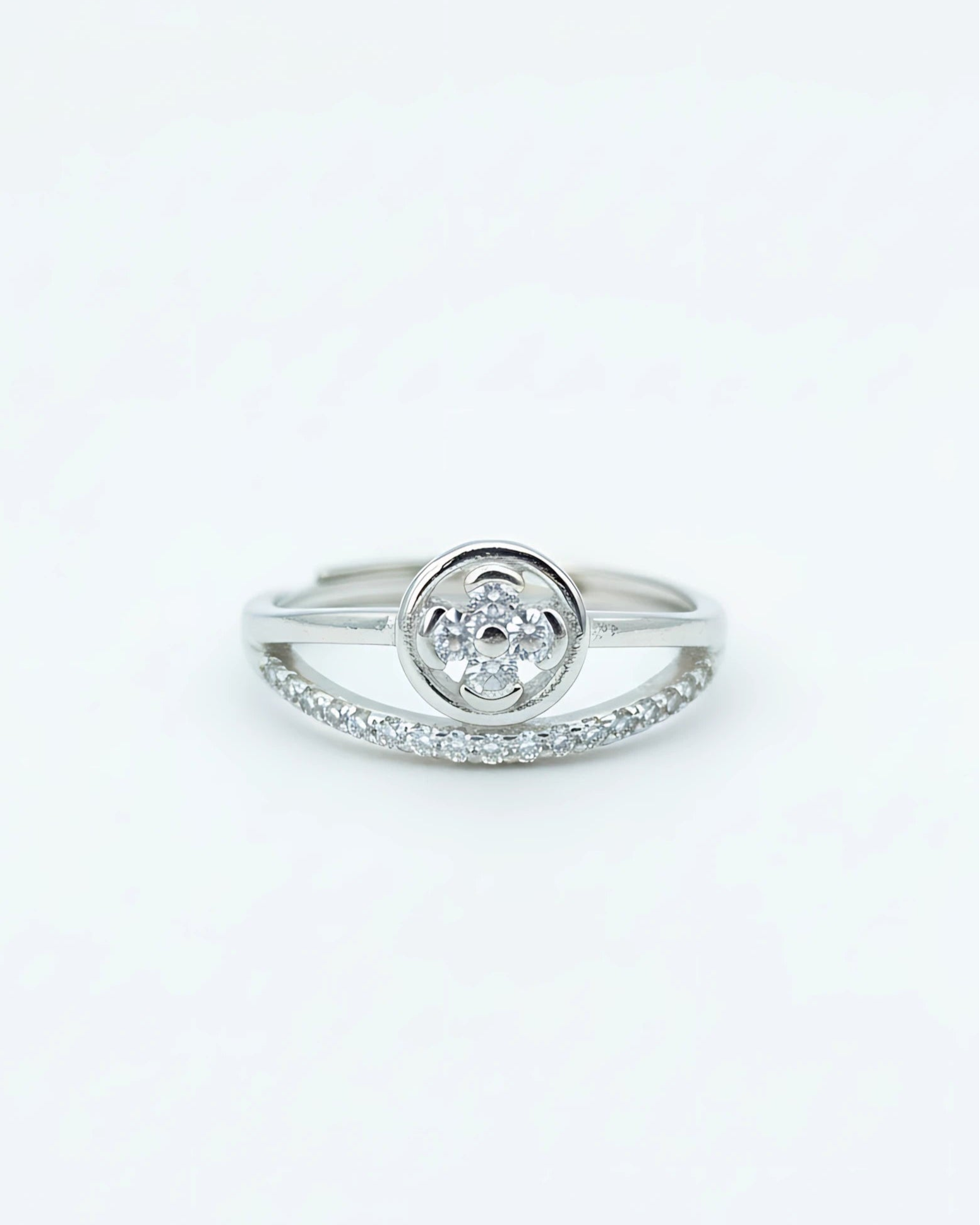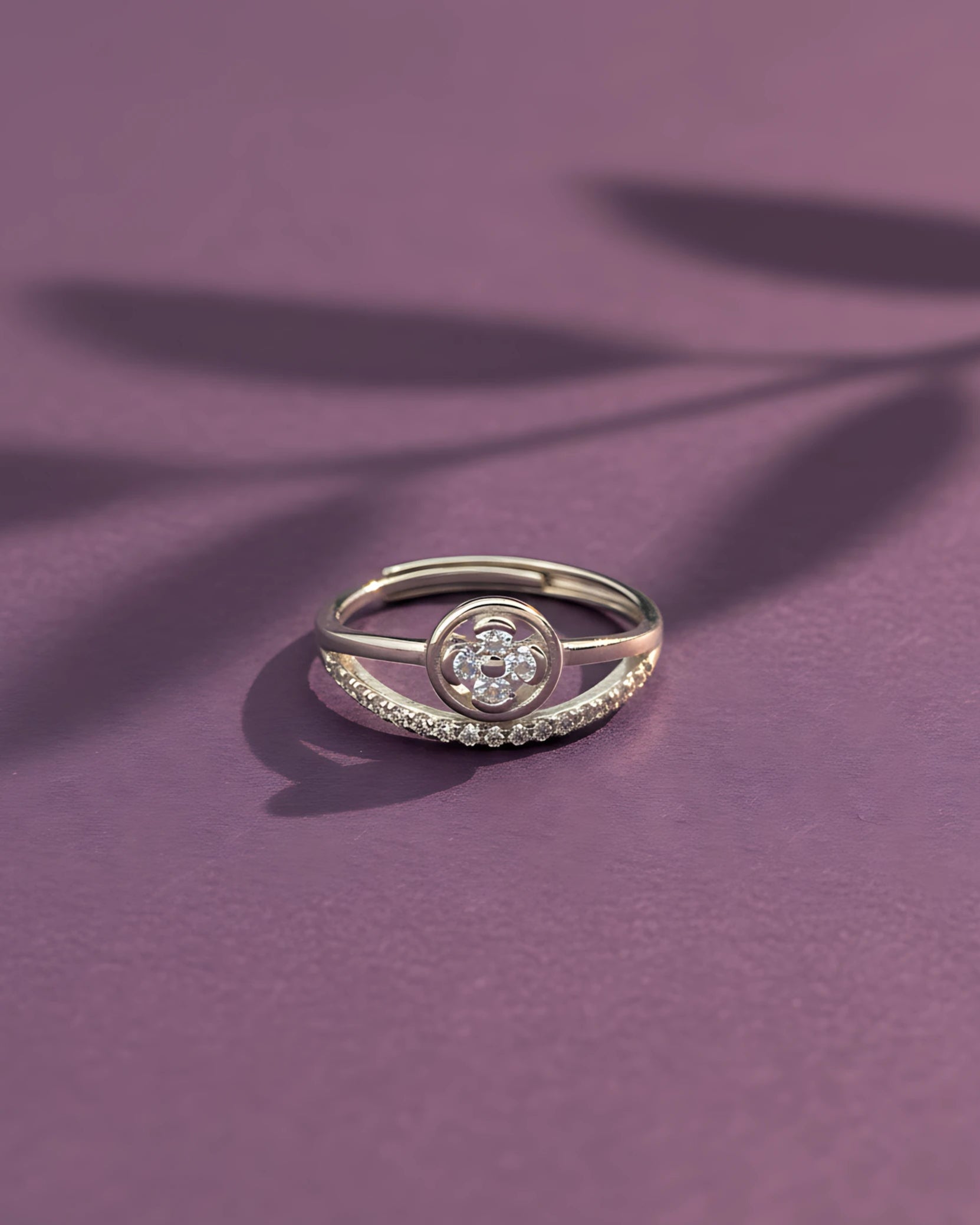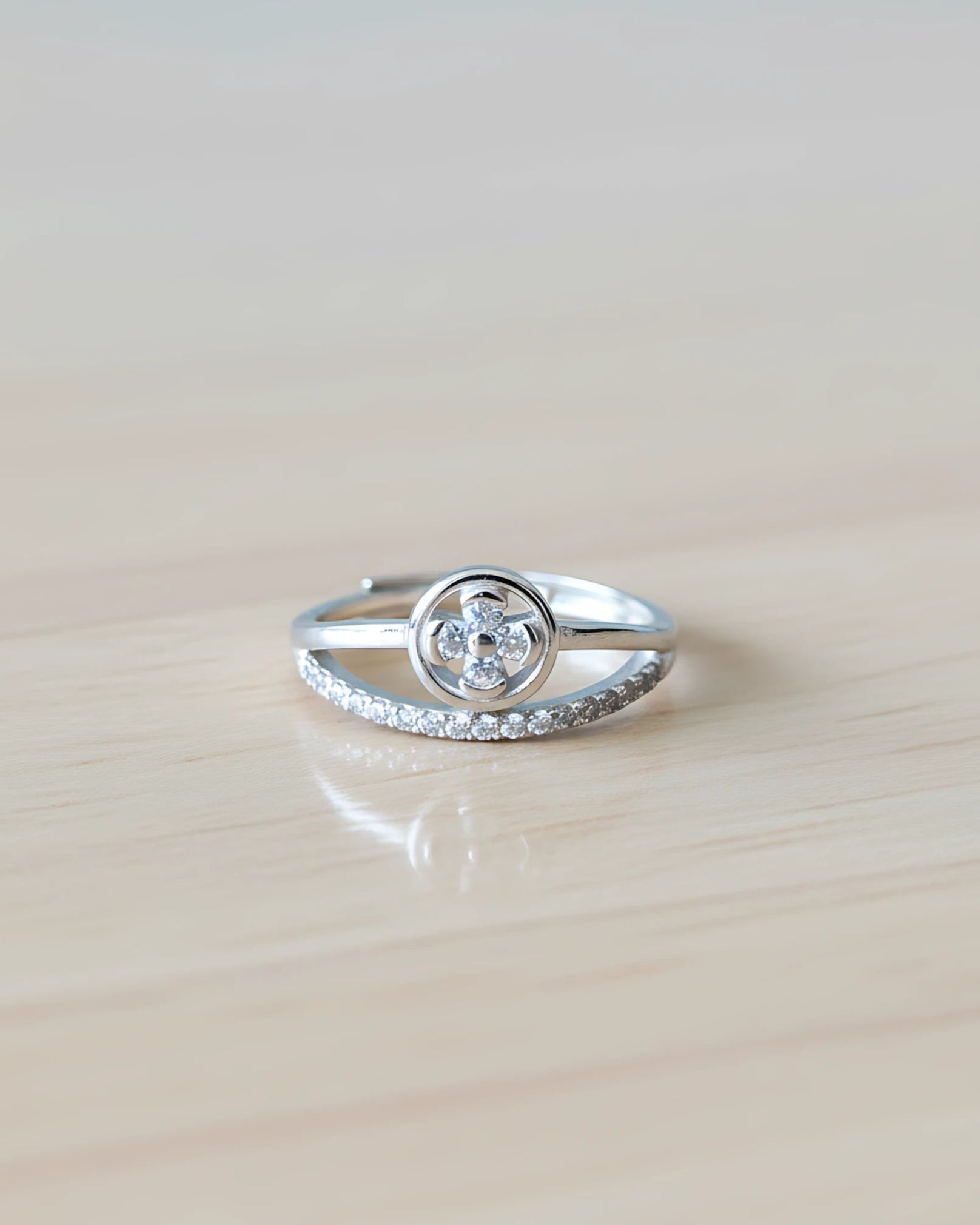 Adjustable ring, sterling silver adjustable ring, flower ring for women, CZ adjustable ring, silver flower ring, women’s open band ring, 925 silver ring, flexible ring, floral jewelry, daily wear ring.