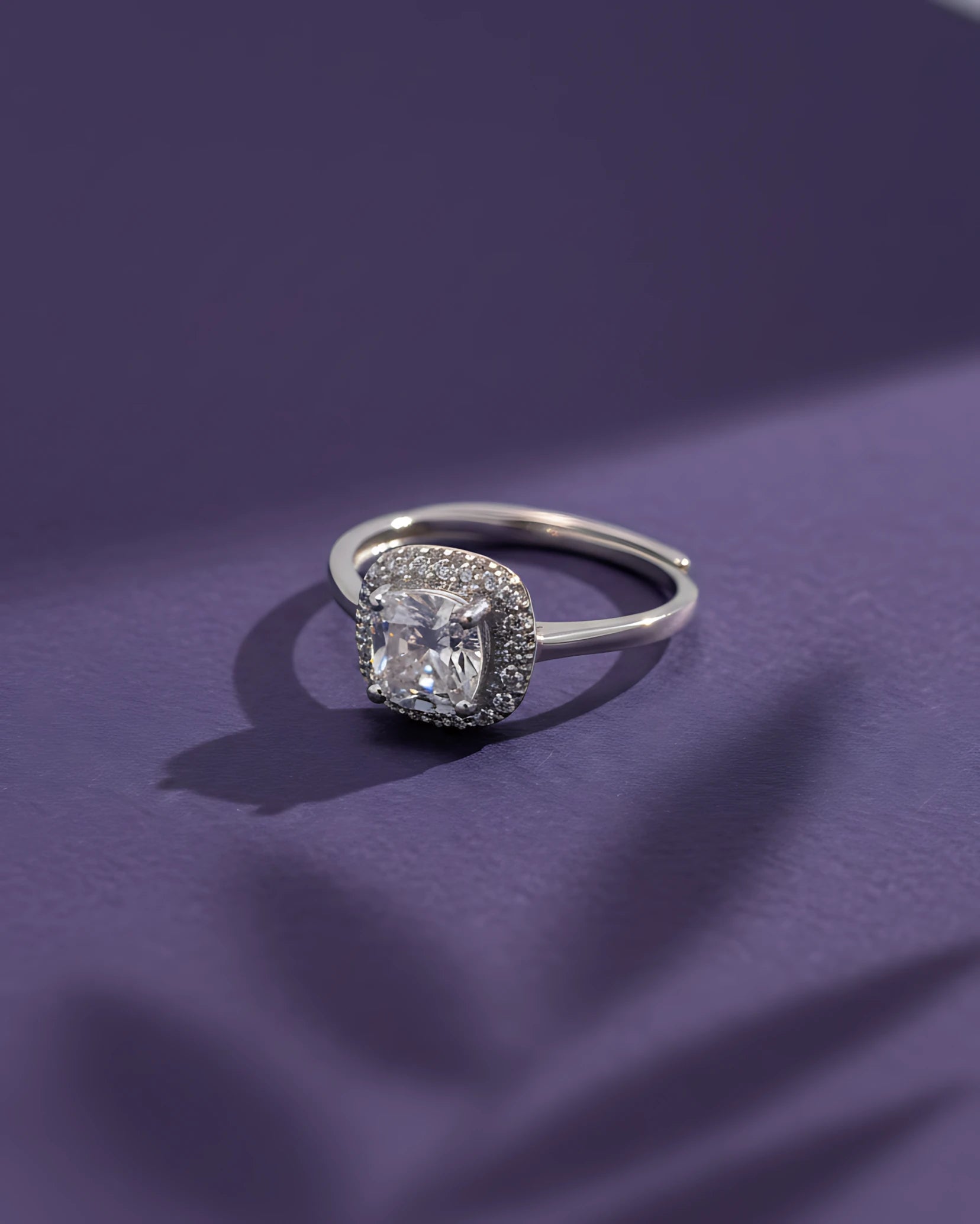 Radiant Halo Adjustable Ring combines trending cushion-halo style with everyday comfort. The adjustable band gives total flexibility, making it an ideal gift and a smart choice for busy, fashion-forward women. The high-quality CZ stones ensure you shine from every angle, while the silver base delivers durability and shine for years.