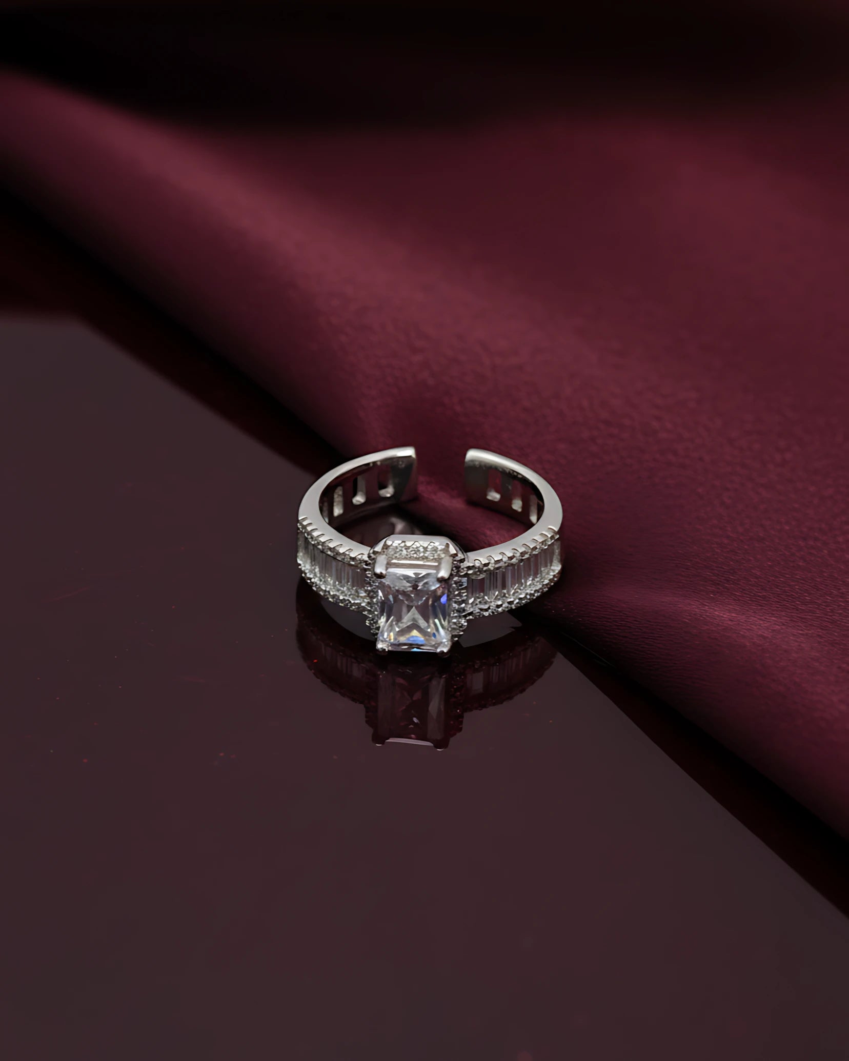 Rule your world with sophisticated power wearing the Royal Radiance Adjustable Ring - where emerald cut elegance meets modern convenience at Antariksha.co.