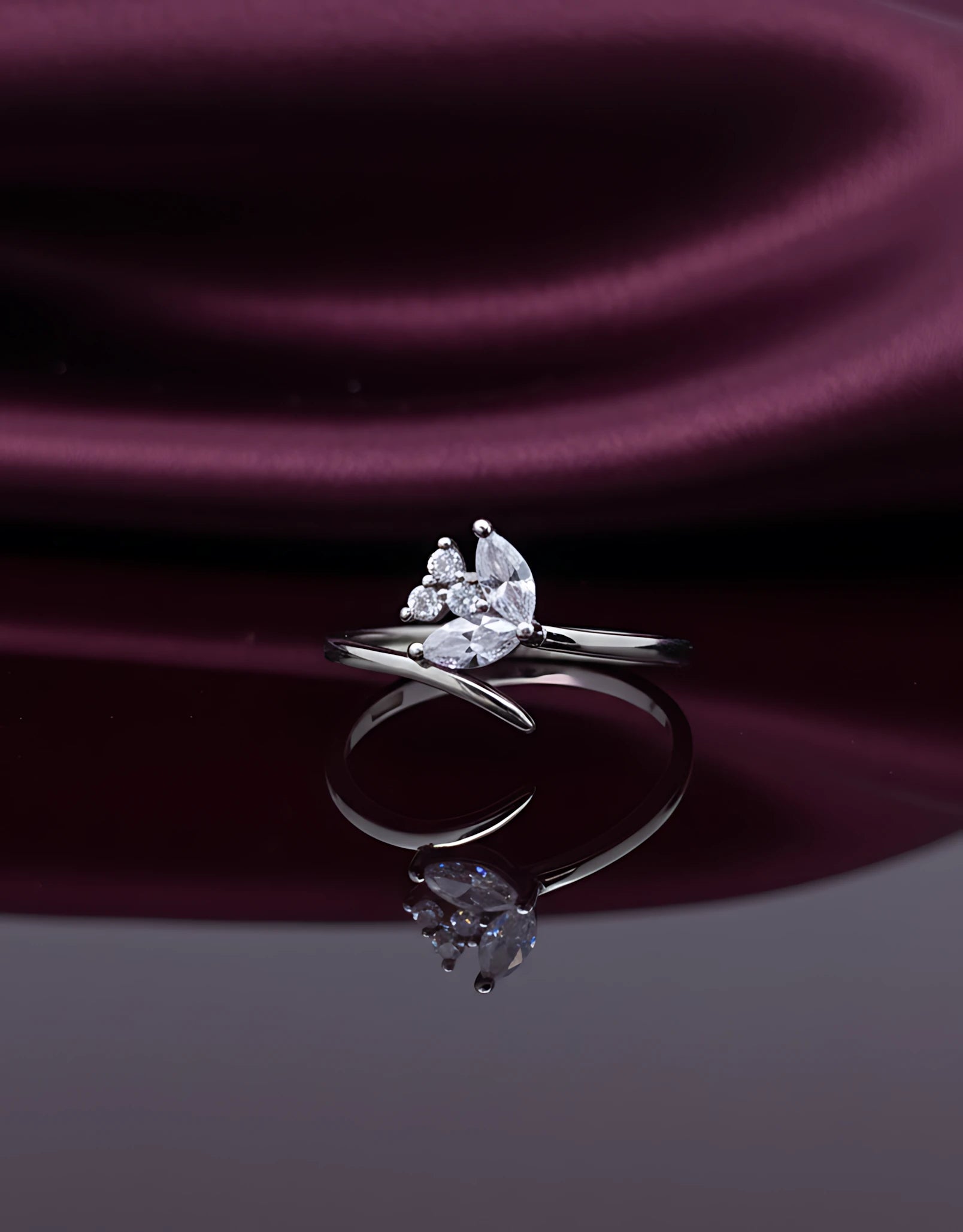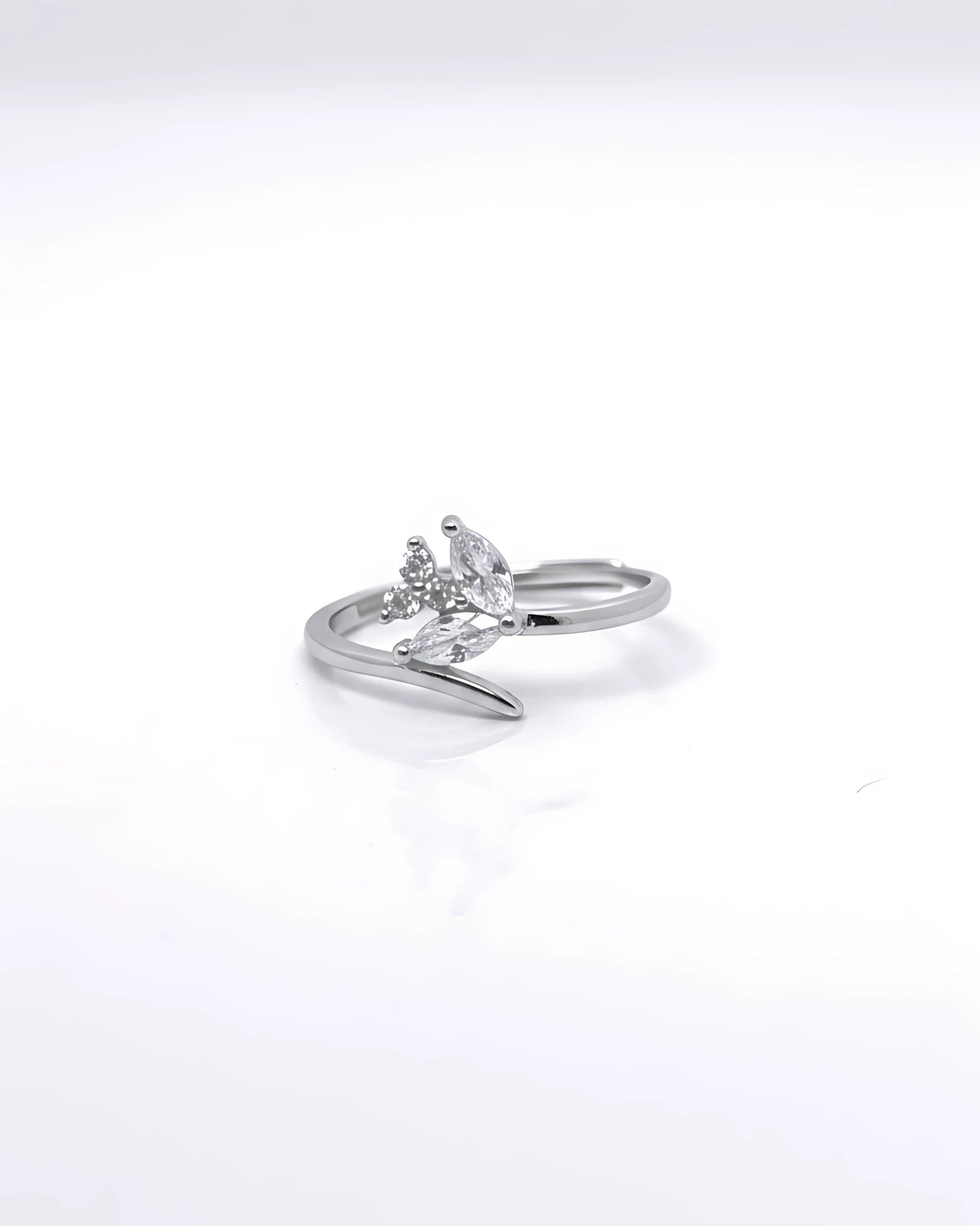 Adjustable leaf ring, sterling silver petal ring, open band ring, CZ silver ring, nature-inspired jewelry, 925 silver ring, women’s adjustable silver ring, daily wear ring, gifting jewelry.