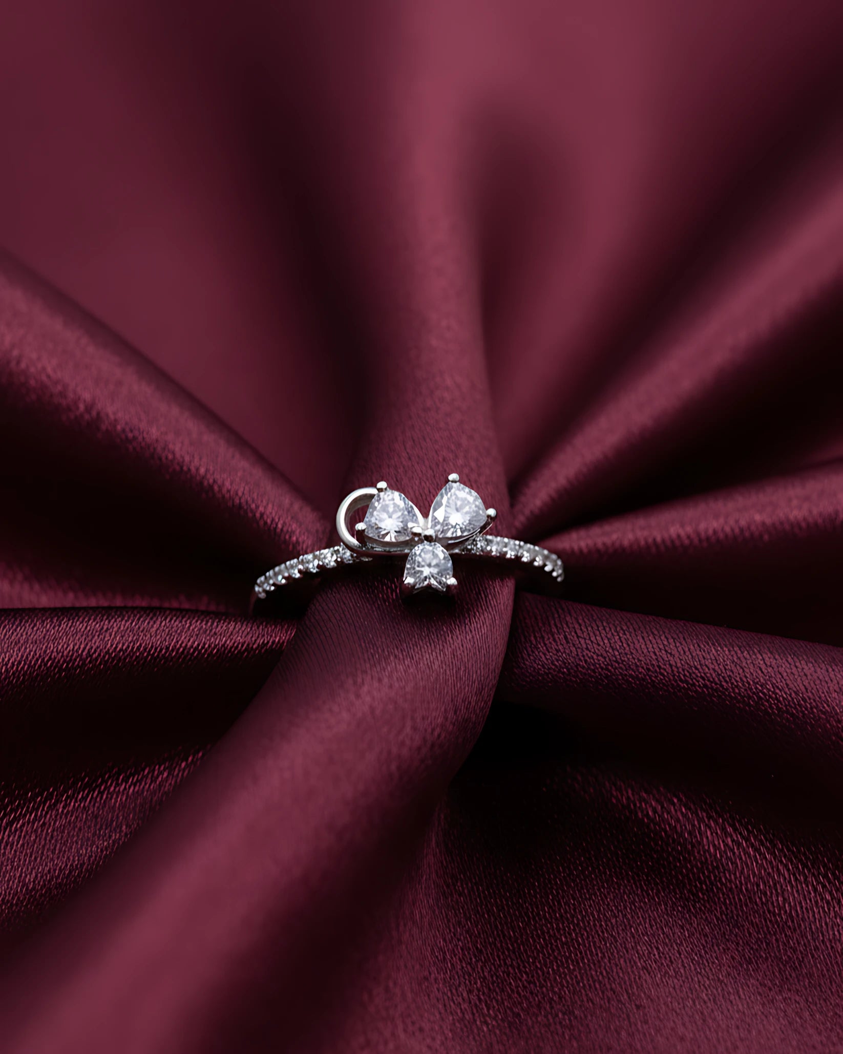 Experience the perfect blend of meaningful symbolism and practical comfort with the Trinity Cascade Adjustable Ring - where timeless three stone tradition meets modern convenience at Antariksha.co.